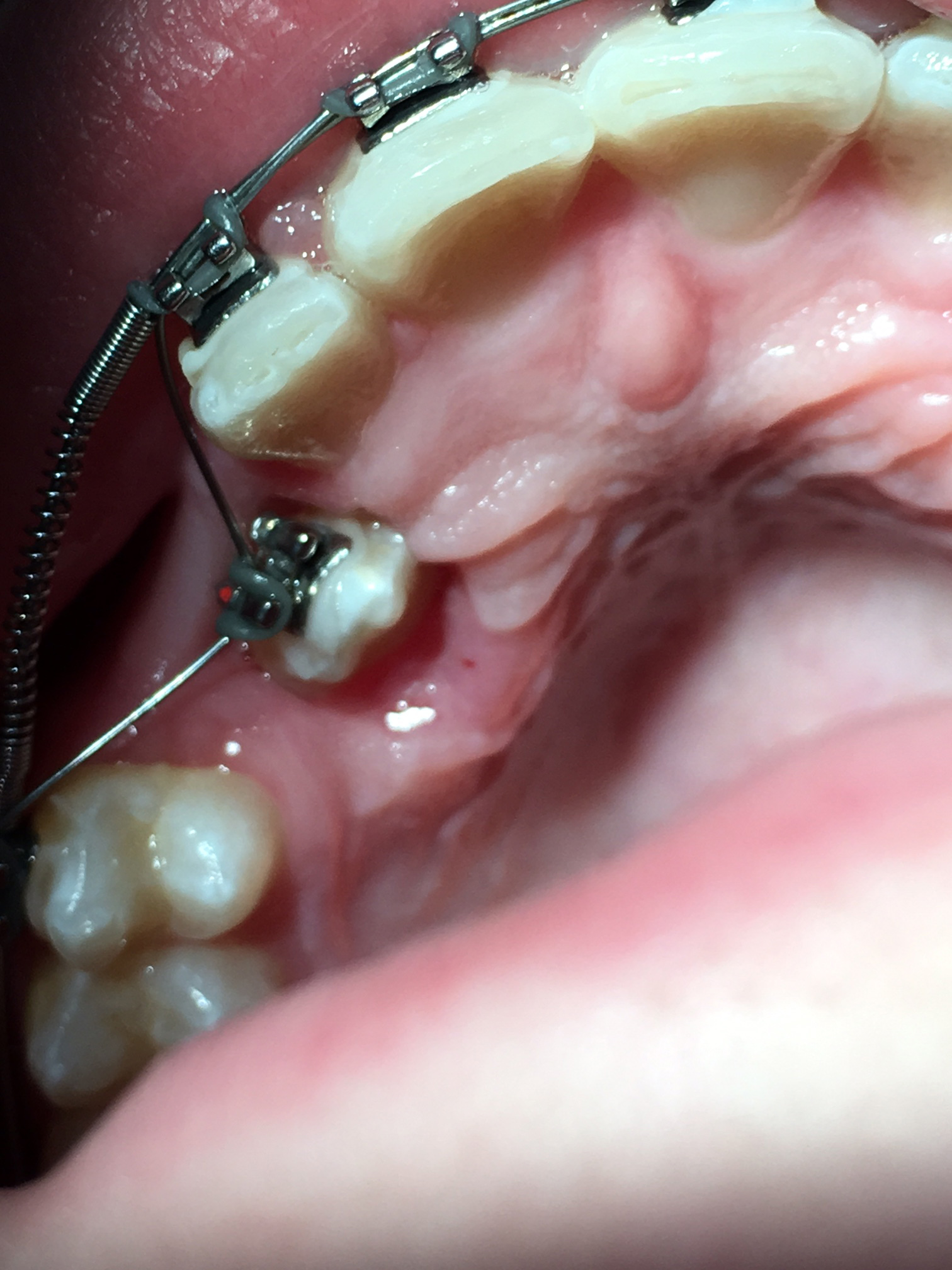 In addition, laser gingivectomy can be performed to remove excess soft tissue and expose the crown of a partially erupted tooth, allowing brackets to be placed properly—ideally in the center of the teeth—to enable an improved level of hygiene maintenance during treatment (Figure 6 through Figure 8).63,87