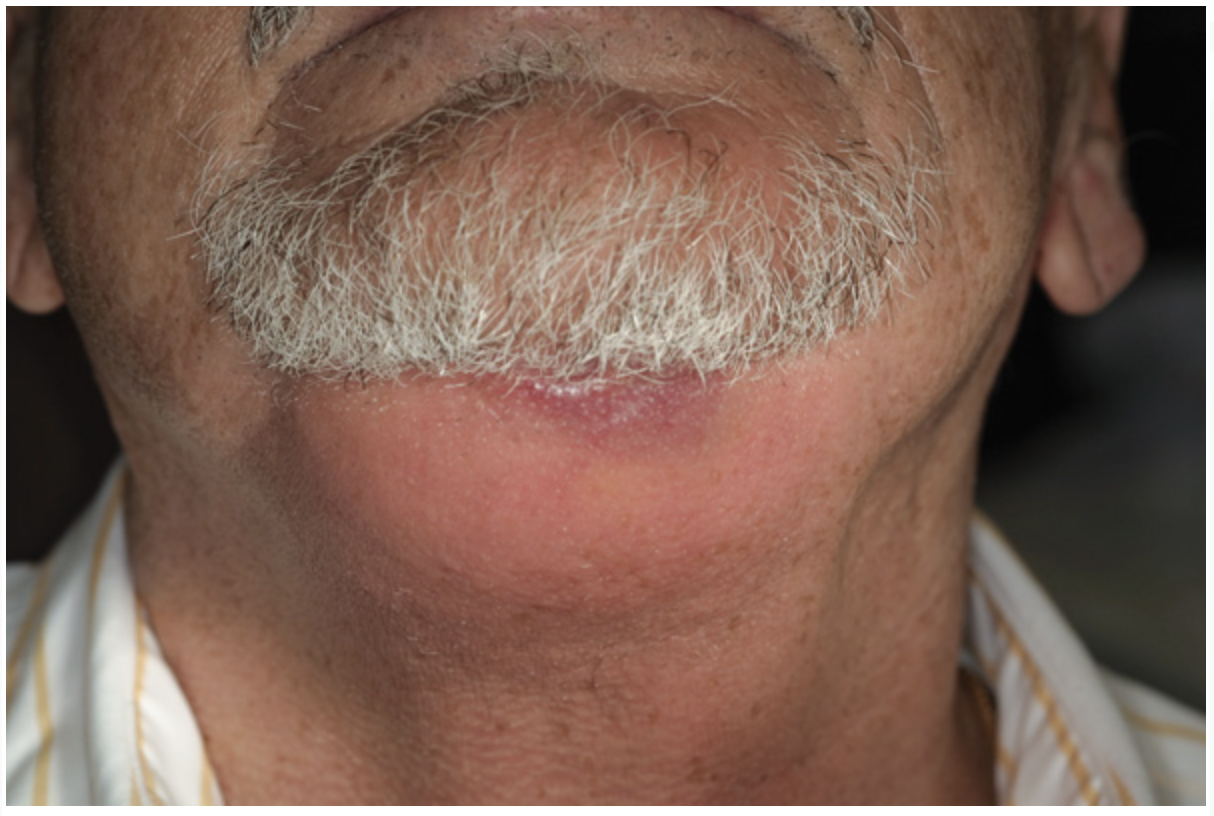 Visual inspection—During visual inspection, the face and neck should be examined for redness and asymmetry due to swelling, and the patient should be assessed intraorally for localized or diffuse swelling and tissue color alterations.