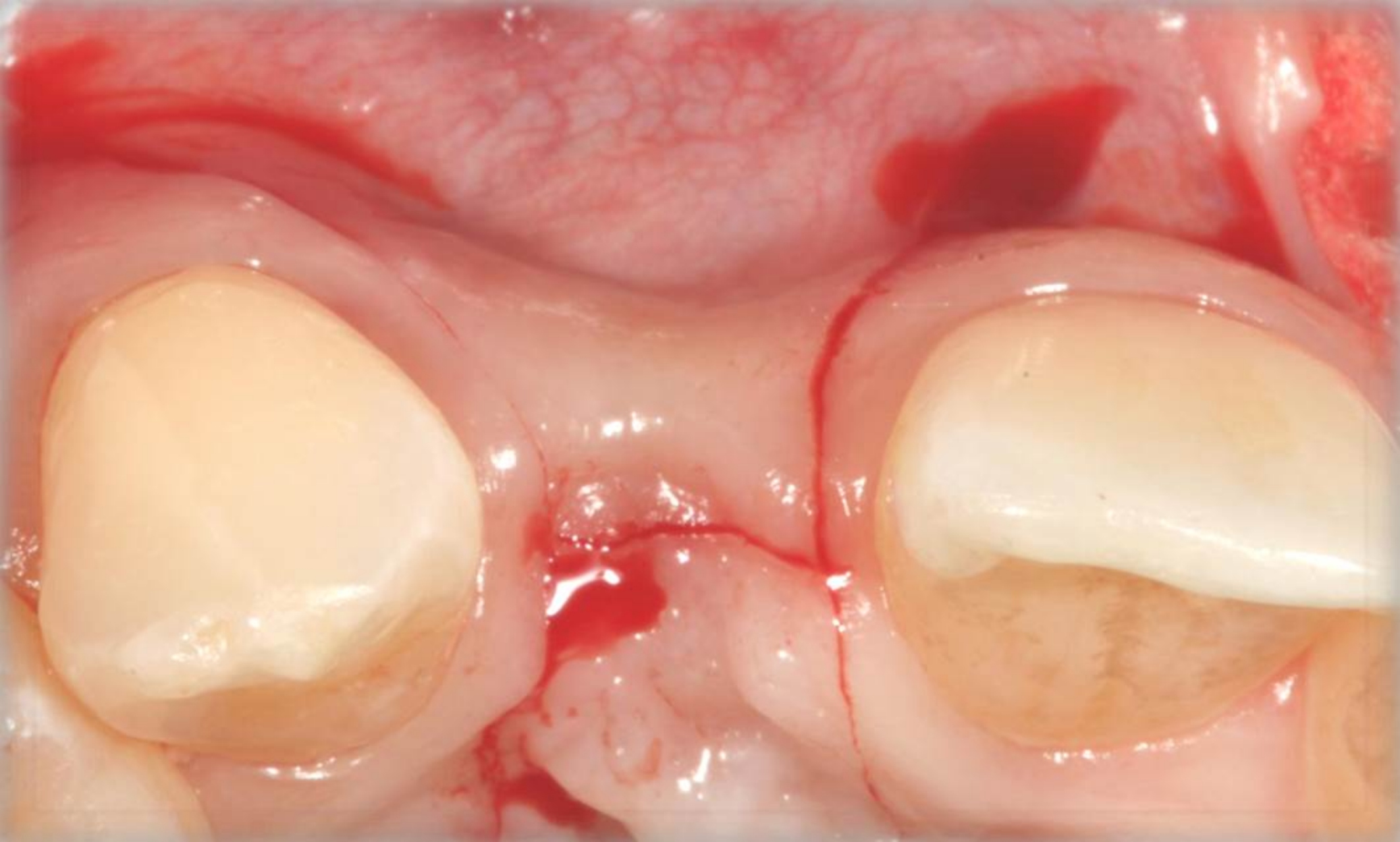 There are several issues that can arise when executing papillary-sparing incisions, including the inability to close incision lines. If graft material prevents primary closure of buccal vertical incision lines because of increased tissue volume, the vertical incisions should be extended apically and a periosteal fenestration incision is created at the base of the flap to advance it. This facilitates coronally positioning a wider part of the flap. Accordingly, it is important that the base of the flap be wider than the coronal aspect.