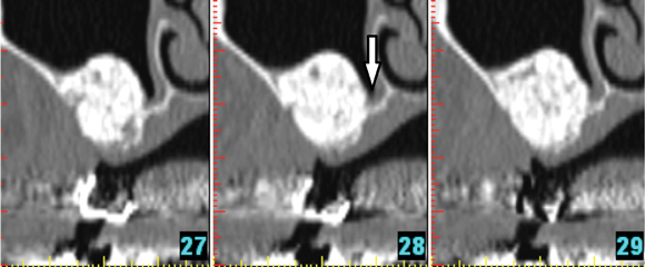 The zygomatic arch, or cheekbone, consists of the zygomatic process of temporal bone and the temporal process of the zygomatic bone (Figure 14). Sometimes, due to a patient’s anatomy the zygomatic arch will be superimposed upon the sinus in a 2-D radiograph and obscure important diagnostic information.
