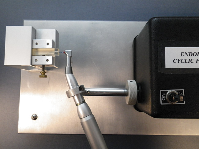 Prior to use, a file can be tested on a cyclic fatigue endodontic rotary file testing instrument (Figure 2). Additionally, a torsiometer endodontic rotary file testing machine can be used to test for torsional stress (Figure 3).