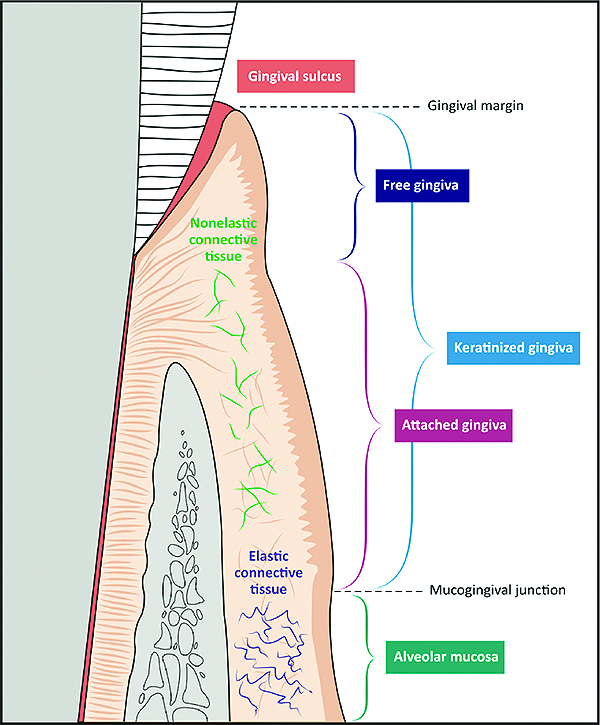 Soft tissue augmentation procedures around teeth generally encompass two goals: keratinized-tissue (KT) width generation and root coverage. Therapies designed to increase KT width are aimed at providing at least the 2 mm of KT (1 mm of which is attached) that is thought to be necessary to maintain periodontal health1 (Figure 1).