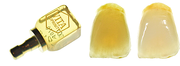 New additions to this category are zirconia-reinforced lithium silicates (ZLSs) (eg, VITA Suprinity®, VITA Zahnfabrik [shown in Figure 12]; CELTRA™ Duo, DENTSPLY). ZLS materials comprise a lithium-silicate glass ceramic that is strengthened with approximately 10% zirconia crystals. Although these materials are still relatively new to the market, initial in vitro testing shows they have excellent optics and physical properties similar to lithium disilicates. Only lithium disilicates, however, have long-term clinical data to support their use as single restorations anywhere in the mouth.