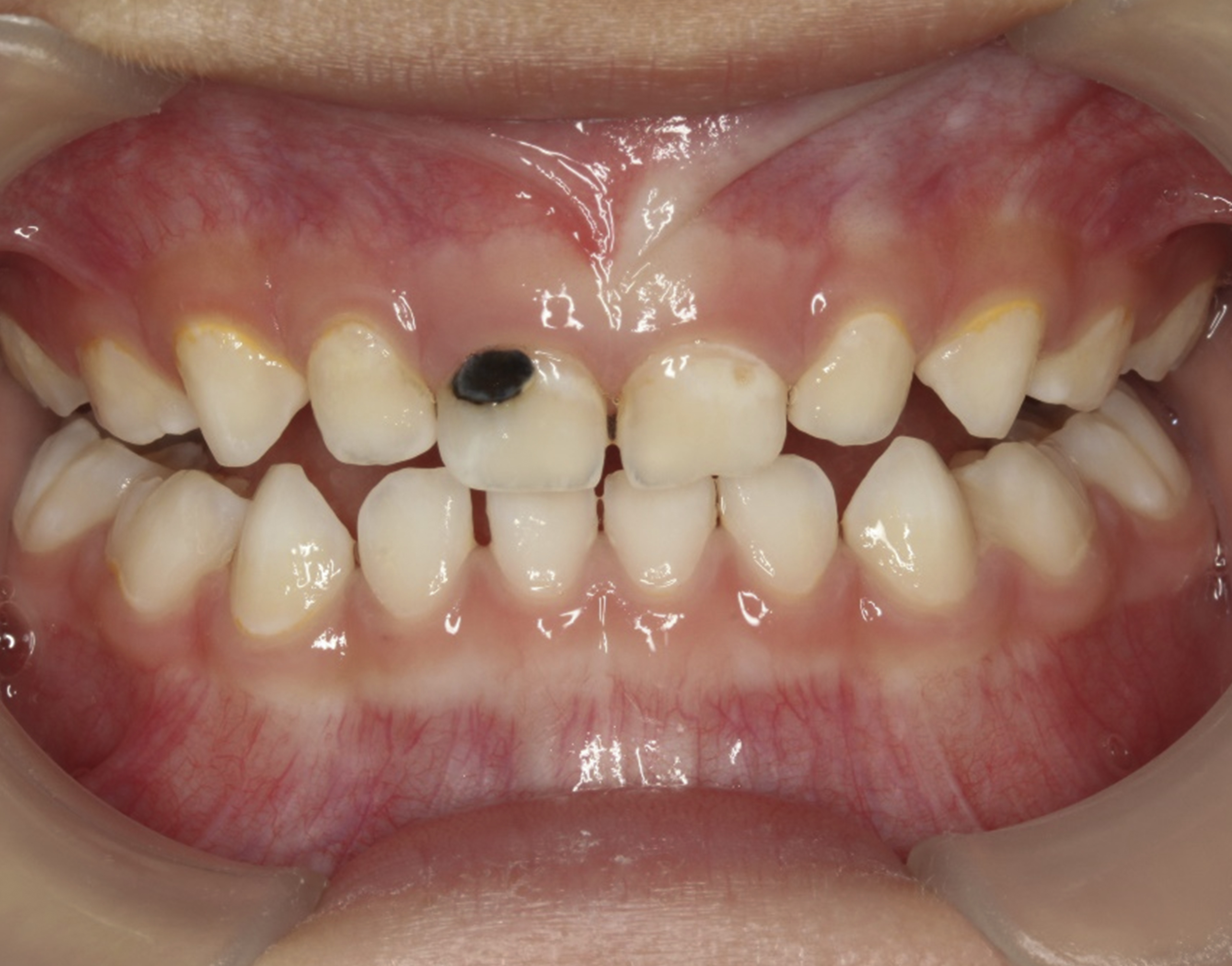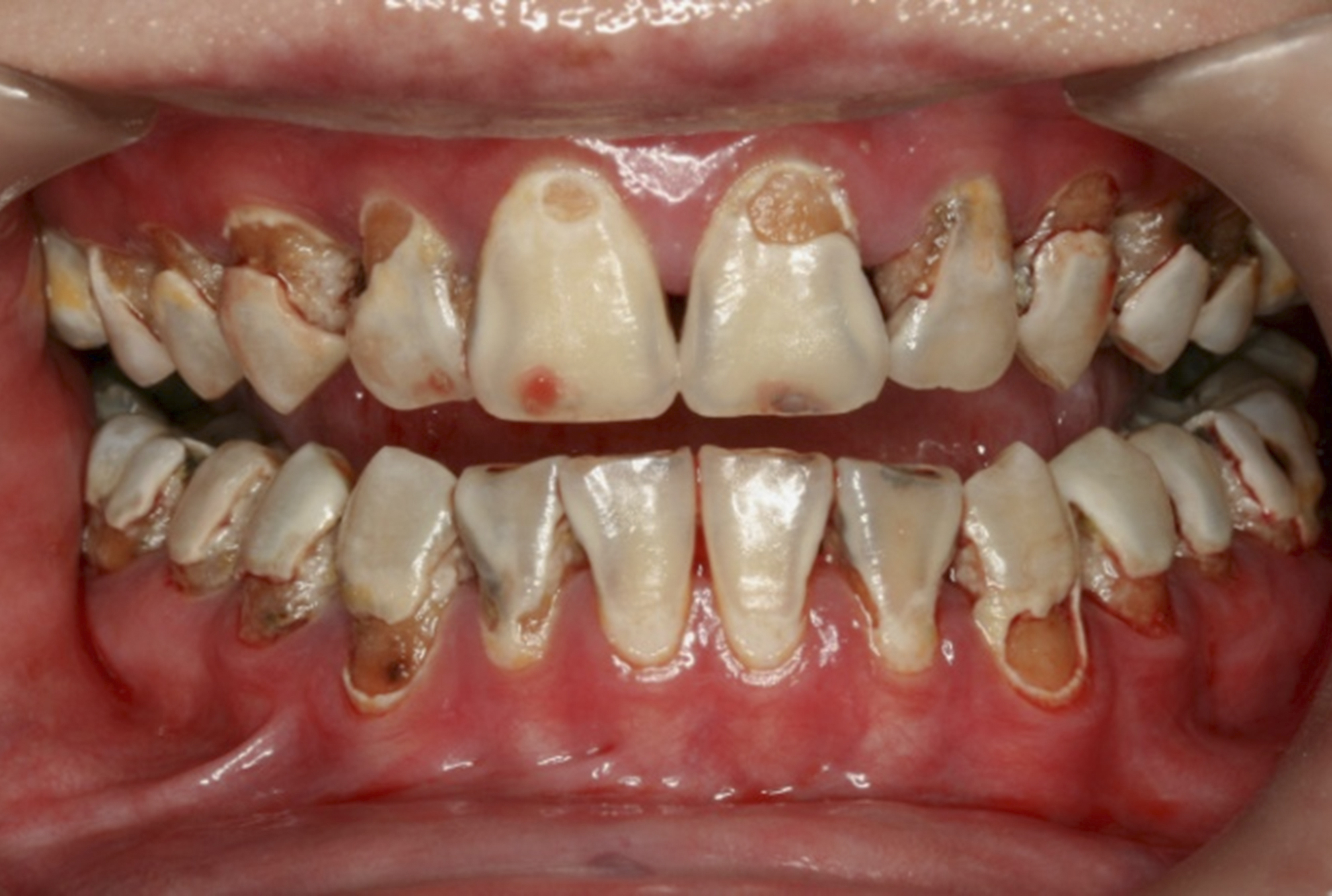 There is no consensus on the frequency of application, and 38% SDF has been used annually or biannually on clinical trials in children23,31,33,34 and in elderly.30,35 Yee and his co-worker found one-off application of 12% SDF was ineffective in arresting caries in children.31 The present authors applied 38% SDF weekly for 3 weeks to speed up the process of caries arrest and for treatment of rampant caries.36 One of the present authors’ case reports demonstrated that three weekly applications of 38% SDF can arrest rampant caries and relieve pain from hypersensitivity on a teenager. The SDF-treated caries were found arrested, and they turned coal black in appearance (Figure 9).