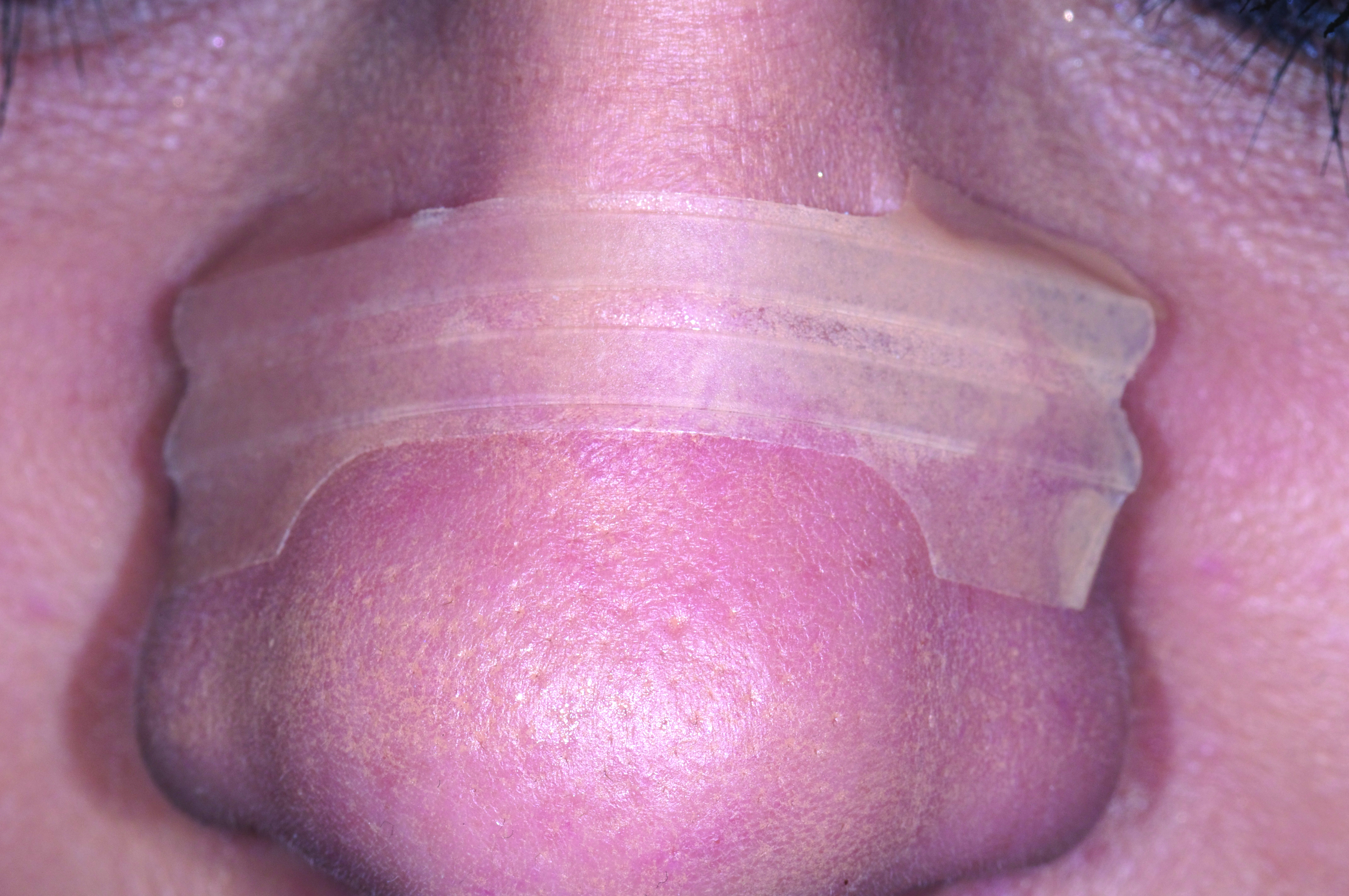One goal of the ANS trial is to extend the advantages of nasal breathing to sleep. The problem is that patients are not aware whether their mouths are open when sleeping. To ensure nasal breathing, the patient can implement Buteyko mouth taping.27 This is done by applying 1-inch paper tape (eg, 3M™ Micropore™, 3M, www.3m.com) across the lips to keep the mouth from falling open during sleep (Figure 3). Folding over the ends of the tape allows it to be removed a bit easier, as the adhesive can make morning removal difficult. Removing the tape can be enhanced further by initially applying lip balm, patting the tape on some cloth before placing it to lessen the strength of the adhesive, or by using a warm, wet cloth in the morning to loosen the tape.