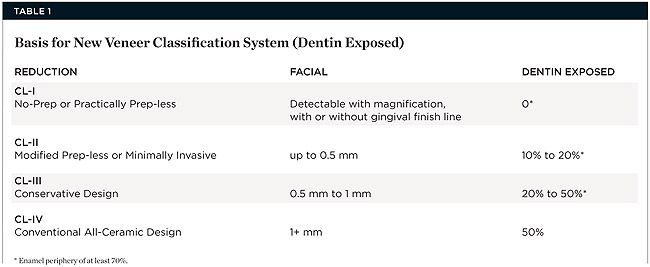 The concept of no-preparation or minimal-preparation veneers is more than 25 years old, yet there is no classification system categorizing the extent of preparation for different veneer treatments.2 Such a system could be indicated in various clinical scenarios and benefit dentists and patients, guiding conservative veneer preparation and placement.2