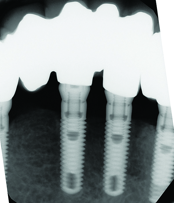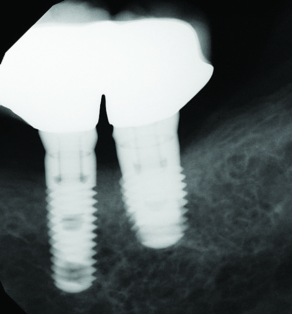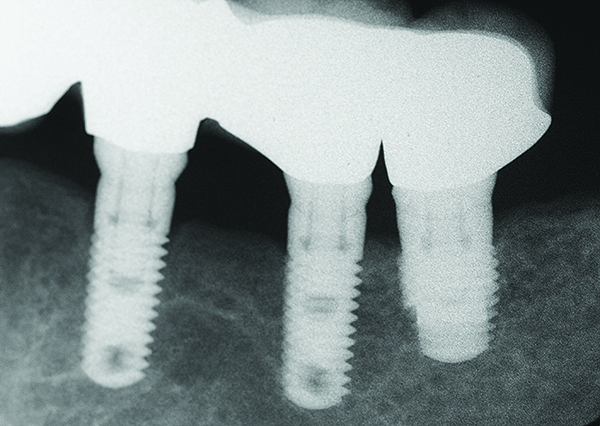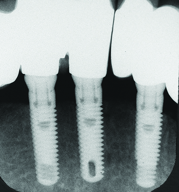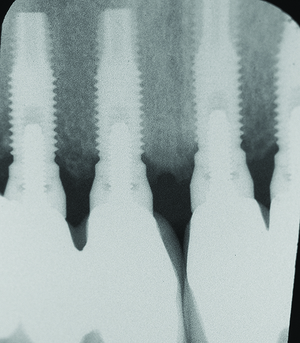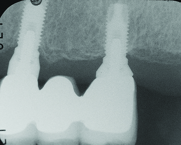 Historically, Albrektsson et al20 established that 1.5 mm of bone loss during the first year after implant insertion was commonplace. Afterward, osseous reduction of < 0.2 mm per year was considered a successful outcome. However, the question arises as to whether clinicians can monitor 0.2 mm osseous changes per year.21-26 This is a dilemma, because bone-level assessments using x-ray paralleling technique have a precision of around 0.5 mm.21 Therefore, there may be an inherent amount of measurement error associated with assessing small changes in vertical bone height.
