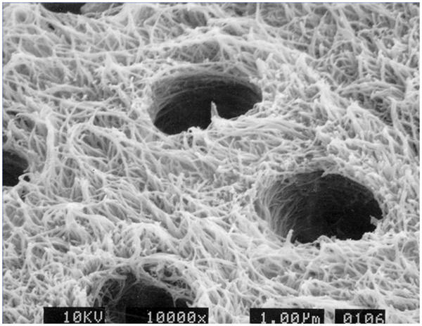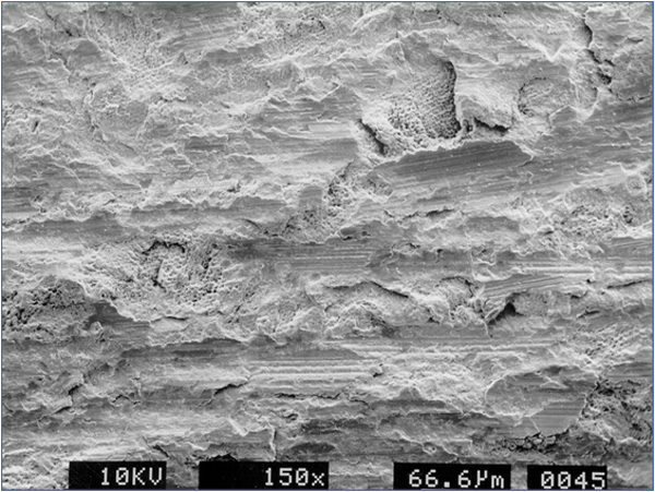 The few available adhesive systems of the 1970s and early 1980s were relatively hydrophobic in nature and unable to adequately penetrate the dentin smear layer, thus limiting their direct interaction with the tooth tissues. The smear layer is the residue that is left on the surface of the dentin after rotary instrumentation with diamond or carbide burs (Figure 1). It is a thin amorphous layer largely composed of degraded collagen, bacteria, and various inorganic dentin and enamel debris.6,7 Early adhesive systems were extremely limited and generally ineffective, in part because they bonded directly to the smear layer and were, thus, limited by the smear layer’s low intrinsic cohesive strength.8 Eventually, it was recognized that the smear layer needed to be removed and/or modified and bypassed in some fashion so that adhesive primers and resins could interact directly with the dentin. In the case of total-etch adhesive systems, the smear layer is essentially dissolved with phosphoric acid (H3PO4) and subsequently washed away during the rinsing step (Figure 2 and Figure 3). With self-etching systems, various acidic primers are used to modify, disrupt, and/or solubilize the smear layer and, although the remnants are not washed away as with total-etch systems, still permit direct adhesive interaction with the dentin substrate.9