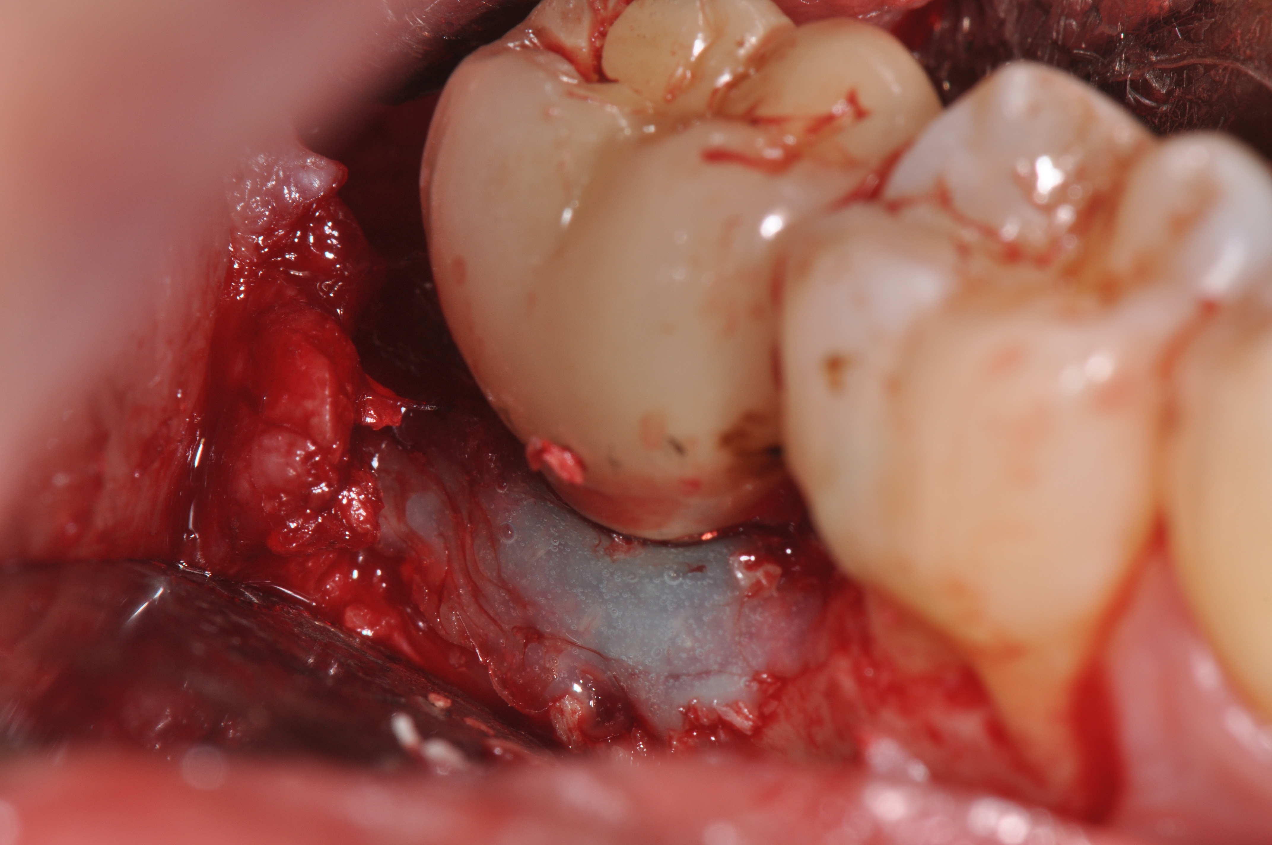 4. Defect fill, using freeze-dried bone allograft (FDBA) and/or anorganic bovine bone