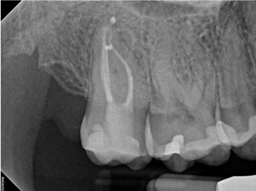 In the first case study, a young female patient was told she had a tooth (tooth No. 2, Figure 3) that should be extracted due to extensive bone loss. Using CBCT, the clinician was able to identify a large lateral canal within the palatal root. Despite the bone loss, the patient was eager to save her tooth. He offered to treat the tooth with the broad-spectrum acoustic technology. As shown in Figure 4, the preparation space was much smaller, which he was able to obturate efficiently. In addition, the small pinpoint of sealer in the middle of the palatal root indicated that the palatal lateral canal had been addressed (Figure 5). In the clinician's opinion, this area was likely the primary source of much of the bone loss.
