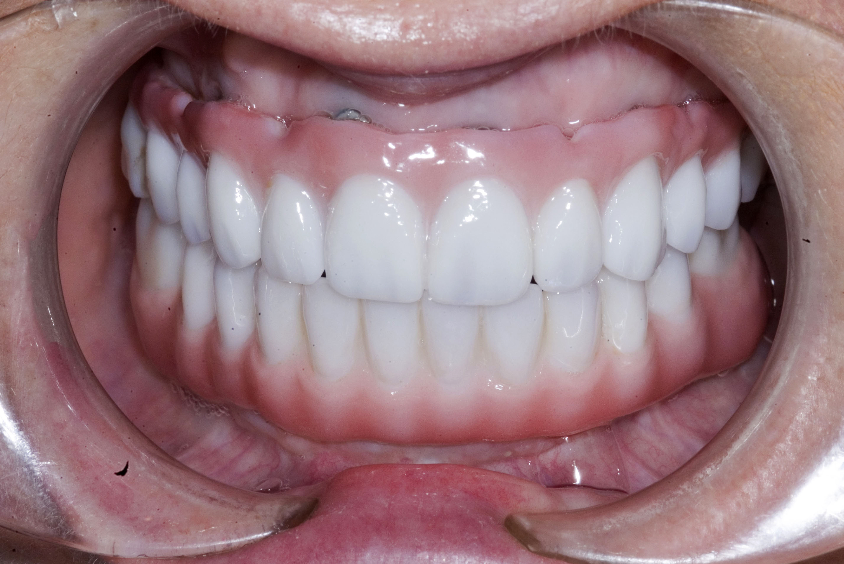 This article will illustrate this point using treatment with a full-arch implant-supported zirconia restoration as an example. The importance and the critical factors are: gaining and maintaining health of the tissue by having an intaglio surface that is easily cleanable (without this, failure is inevitable)4 (Figure 3 and Figure 4); and beautiful, natural esthetics that mimic nature (Figure 5).
