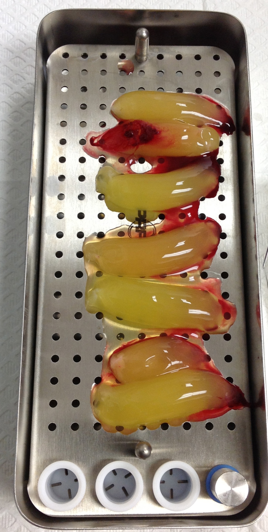 In a quantitative histomorphometric analysis of cell penetration, Gahnaati et al7 evaluated the composition of APRF membranes. Sixty-eight percent of the APRF membranes were colonized by the platelet-derived growth factors harvested by the samples. These findings, correlated with the authors’ clinical experience, led to a conclusion that 3 to 4 membranes are needed per pair of teeth to clinically observe a fibropromotion (Figure 2 through Figure 4).