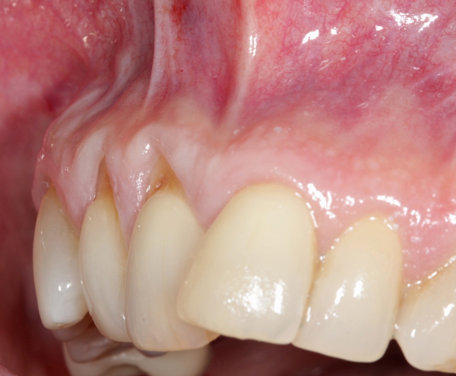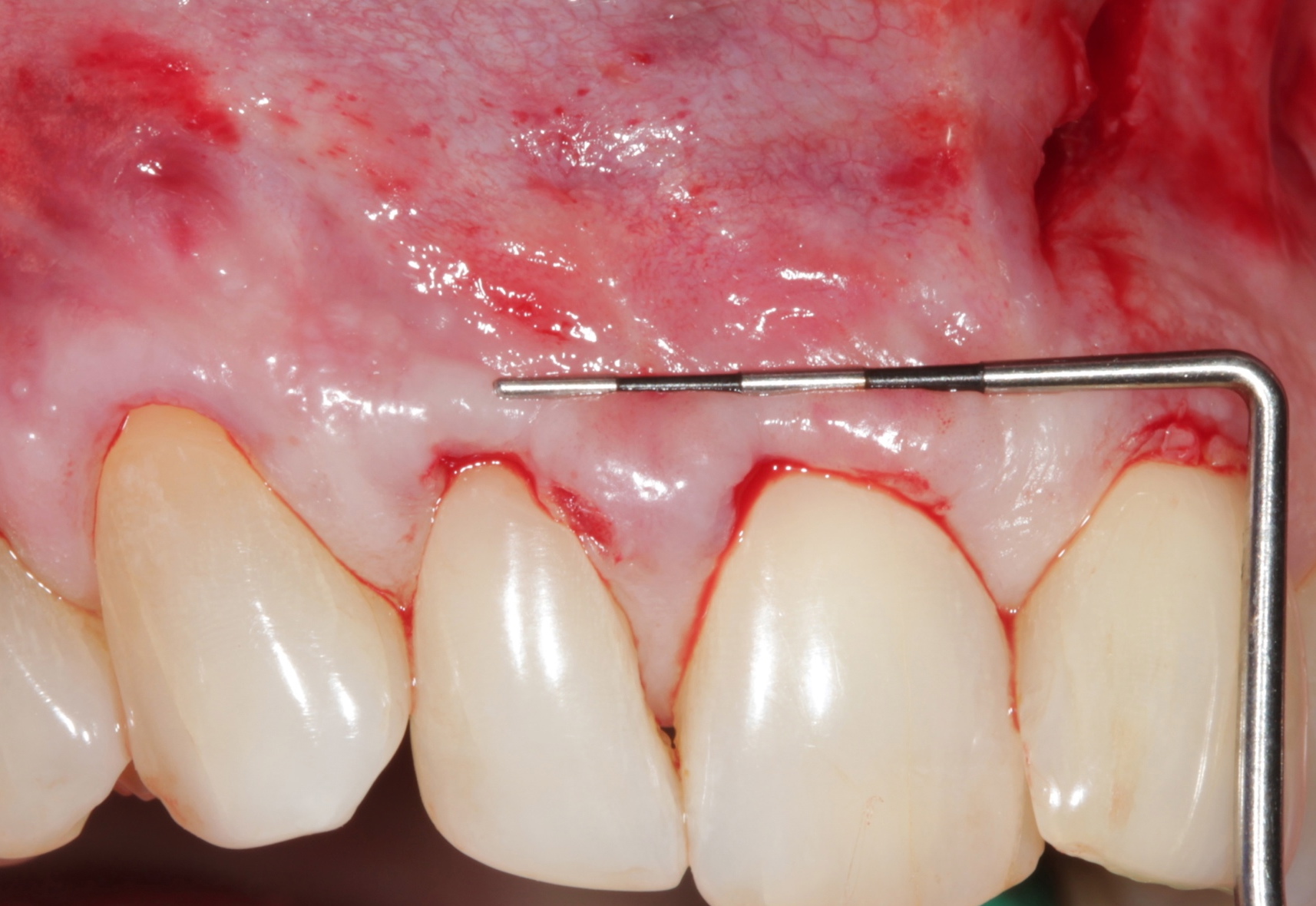 When gingival recession is present on multiple adjacent teeth, one surgical treatment is recommended to treat the entire area.4 A connective-tissue graft from the palatal area used in combination with a pedicle flap (coronal- or lateral-positioned flap) is a common alternative for the treatment of gingival recession. Limiting factors (eg, insufficient amount of connective tissue, patient’s refusal to have a second surgical site, morbidity) have led to the use of substitutes for autogenous connective tissue.3,4 Allograft and xenograft dermal-tissue substitutes are typically utilized in periodontal plastic surgery, with successful clinical outcomes. Acting as a scaffold and allowing fibroconduction, the nature of the obtained attached tissue and the amount of the keratinized tissue have been controversial.4