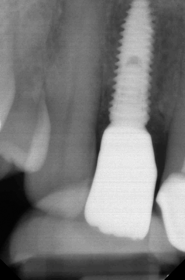 Regarding placement of dental implants adjacent to natural teeth, careful consideration of available bone coupled with the implant dimension and insertion position is needed. Previous studies38,39 have indicated an increased amount of periodontal bone loss associated with a decrease in horizontal distance to the implant. Esposito et al analyzed the bone modification at teeth facing a single-tooth implant in the maxillary anterior region and reported a strong correlation between bone loss at the tooth site and a decreasing distance between the implant and tooth.38 It was also reported that soft- and hard-tissue alterations occurred predominantly within the first 6 months after one-stage implant placement surgery, and it was found that the presence of a tooth next to the implant positively affects the maintenance of the proximal bone crest level and the topography of the tooth–implant unit soft tissues.40