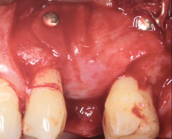 Although the goal of the treatment of peri-implantitis should be the regeneration and reconstruction of the bone loss from the disease process (Figure 20 through Figure 25), there is limited evidence from prospective case series that this outcome may be predictable when using combinations of bone replacement grafts with barrier membranes in specific anatomical bone defect configurations.28