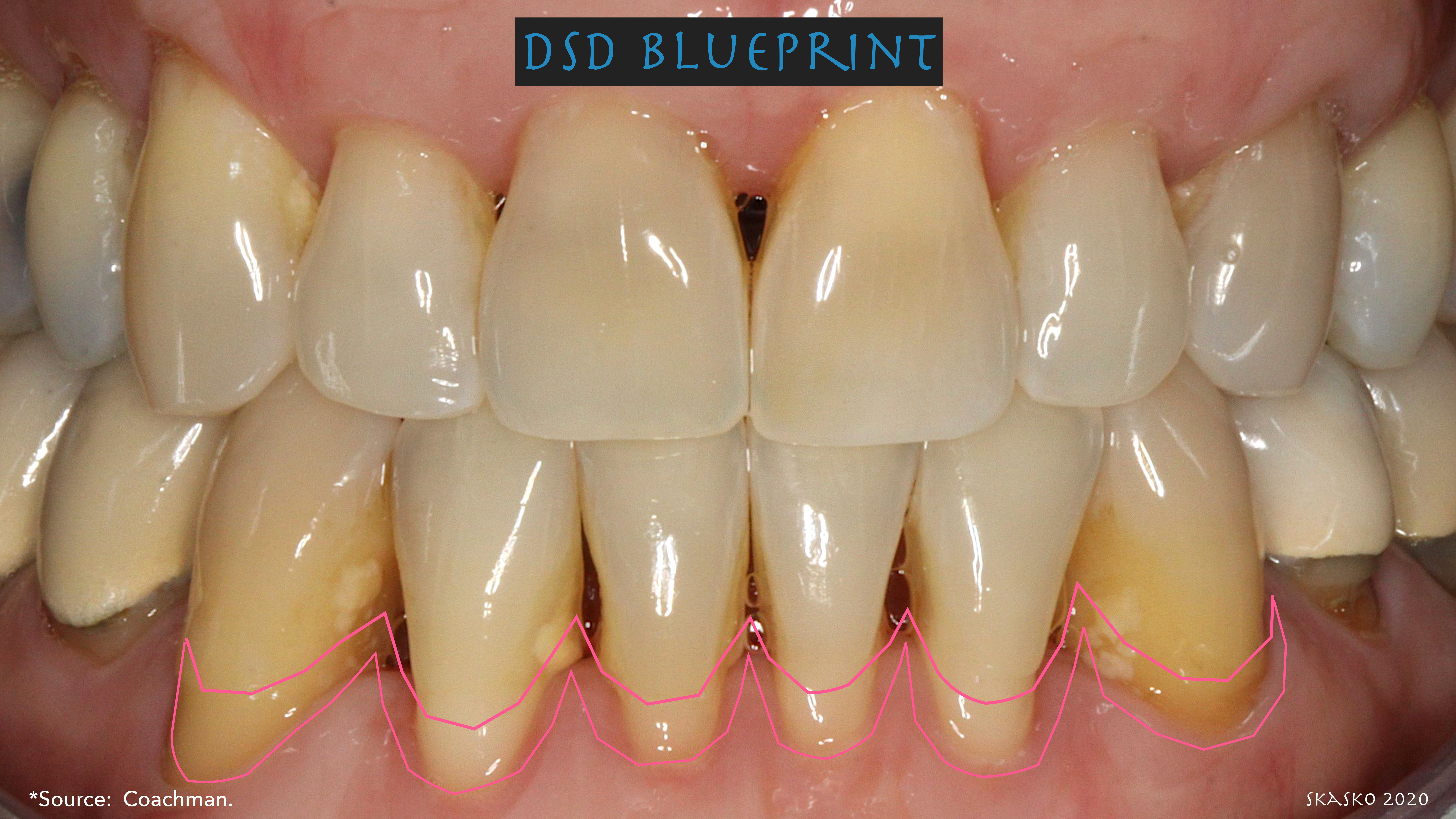 Digital smile design (DSD) is indicated as it not only helps the practitioner, but serves as an educational tool for patients. The practitioner can show the patient's dentition on screen, draw lines to make some areas pink and some white, detailing for the patient where gums should be without ever touching a tooth.