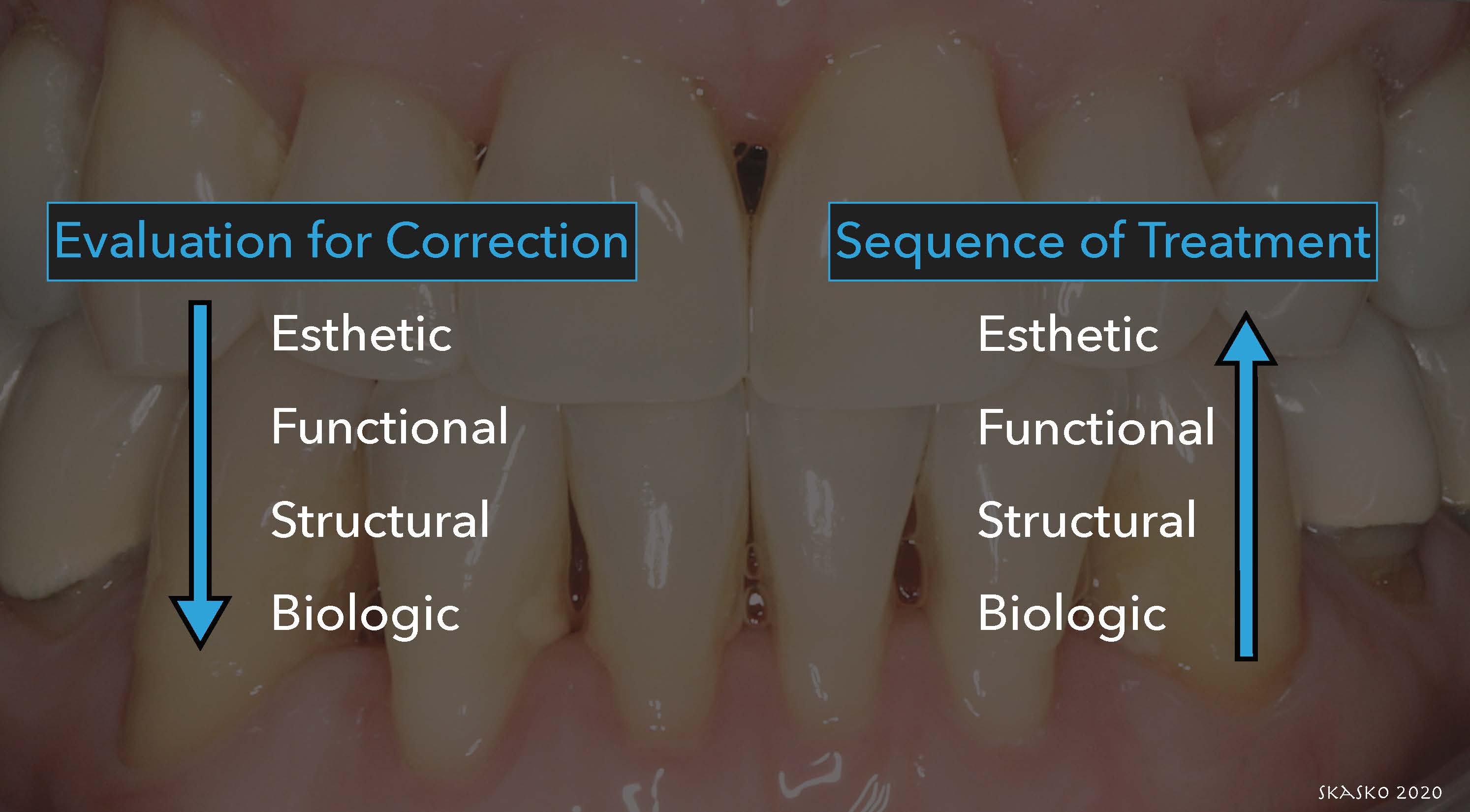 Dr. Ward Smalley of the University of Washington, an orthodontist and prosthodontist, recommends beginning the treatment planning process with a vision,2 and that is particularly important for working with Giomer Technology, because there may not be a simple answer as to how to treat a particular case and what the next step is. It is important to have a blueprint to establish a vision (Figure 3). Initiate a systematic treatment plan or evaluation for correction that includes esthetic, functional, structural, and biologic evaluation. Treat in the reverse order, going from biologic, to structural, to functional, to esthetic evaluation (Figure 4).