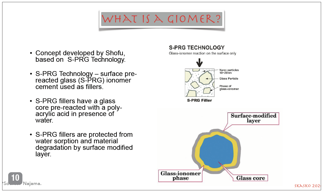 Giomer Technology refers to any product containing a proprietary filler particle engineered by Shofu Dental that has the ability to release and recharge six different ions: fluoride, sodium, strontium, aluminum, silicate, and borate (Figure 10).