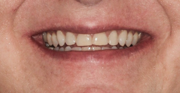 A patient at the author's practice had been concerned for years with how much shorter her teeth appeared than when she was younger. The woman had presented at age 57 with a history of acid reflux and bulimia, although the latter had been under control for some time. The patient was currently under the care of a physician for the management of gastroesophageal reflux but still reported occasional symptoms despite treatment. She wanted a "quick fix" to her chief complaint of shorter anterior teeth. She thought her length could be restored by simply adding bonding to the edges of her teeth, and believed that the reflux had affected only the incisal edges. This type of thinking is not surprising, as patients often do not notice the subtle changes that occur over time, like dentoalveolar extrusion, buccal collapse, and premature contacts. Patients often can only appreciate that something looks different and is unattractive to them, and in their mind the solution should be relatively quick and easy. To the patient, the changes seem to happen relatively quickly, while clinicians know these types of structural changes occur often over years to decades. With the advent of social media, direct-to-consumer treatment options, and instant makeovers on television, patients often do not understand the complexity or length of time involved in complex treatment plans. Additionally, clinicians often gloss over the "gory" side of dentistry to provide comfort to patients and to ensure they seek treatment. Dentists' successful ability to undersell their services means many patients will not fully comprehend the journey required for full rehabilitation. This author's patient was no exception to that challenge.