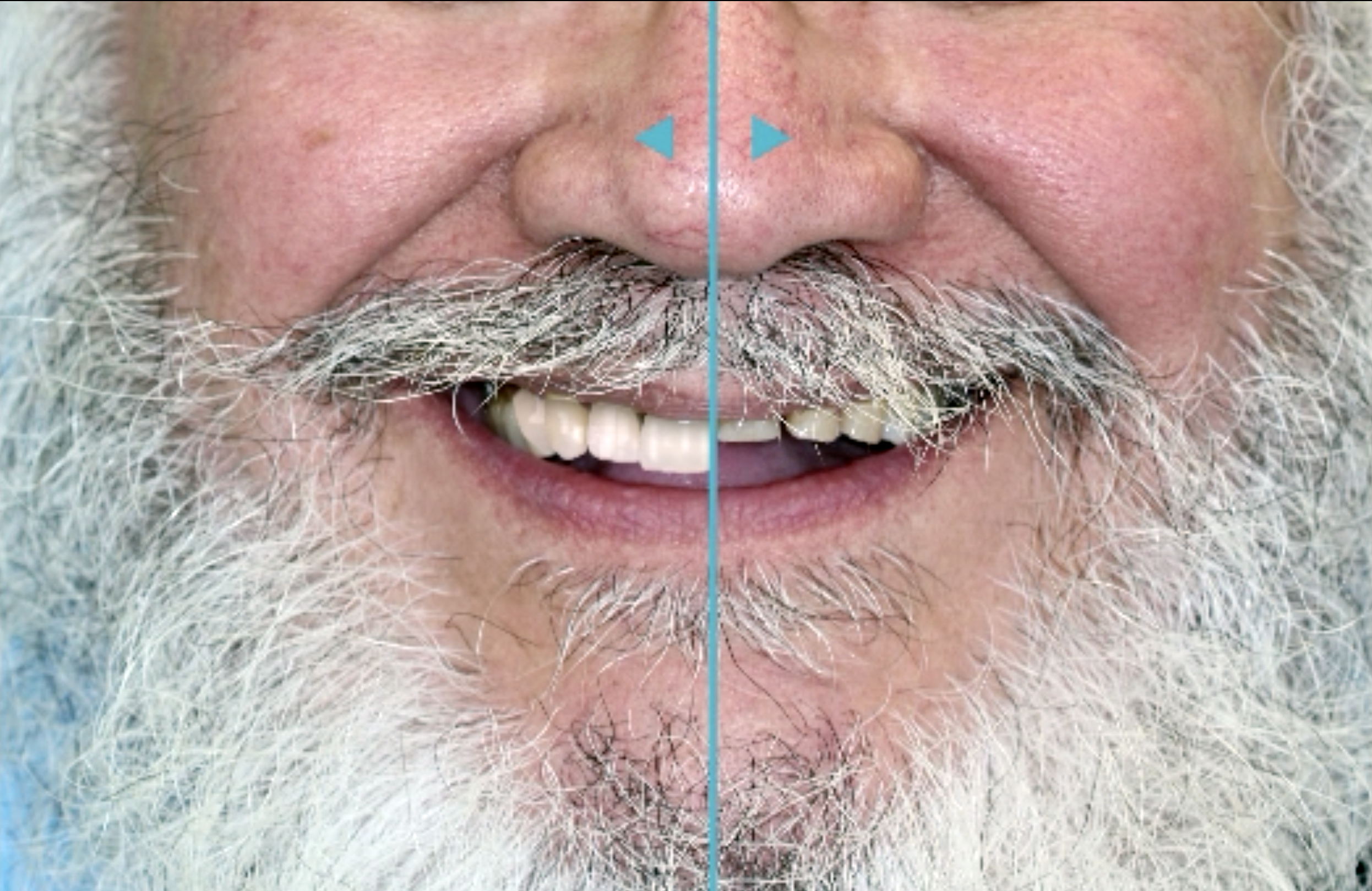 By capturing high-definition, high-resolution scans of the preparations, locking the surfaces of the margins so they do not change as the scan continues, and moving all around the arch, every preparation is captured accurately and verified in real time. In the author's experience, this is a very predictable and quick procedure, especially in cases where preparations proved to be less than ideal, with overly deep margins. The practitioner was able to capture the bite over the preparations using provisionals on the contralateral side to hold and reference the vertical dimension and relationship record. The resulting scan provided a wealth of information that could be used by the laboratory to create the final layered zirconia restorations. Before and after photographs of this case are shown in Figure 3.