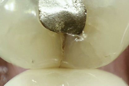 As cracks extend subgingivally along the root surface into the periodontal attachment, they create an open pathway of irritants, including bacteria from the oral cavity and from involved root canal spaces to the reactive periodontium, causing inflammation of the periodontium and bone loss along the fracture line.7 Cracks are precursors to complete fractures, and, if permitted to progress to their natural conclusion, they can render teeth unsalvageable.2,3 Although they do not occur nearly as frequently as caries and perio- dontal disease, tooth fractures are still the third-most common cause of tooth loss and can appear in dentitions that are well cared for and maintained.9These pathologic consequences are an impetus to address asymptomatic vertical cracks at very early stages.