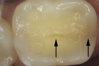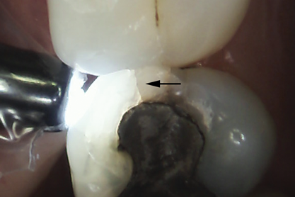 The current diagnostic tools cannot determine the full extent of cracks without intervention, and significant enamel cracks do not always indicate the presence of underlying dentin cracks.2,14A definitive treatment plan for the type of final restoration, especially in the case of occlusal coverage restorations, generally cannot be made preoperatively based on the initial clinical impression of the enamel crack if the tooth is otherwise not compromised except for the enamel crack. An exploratory fissurotomy and/or removal of the existing restoration and caries is still needed first to verify the extent of the enamel crack and determine the condition of the remaining tooth structure.