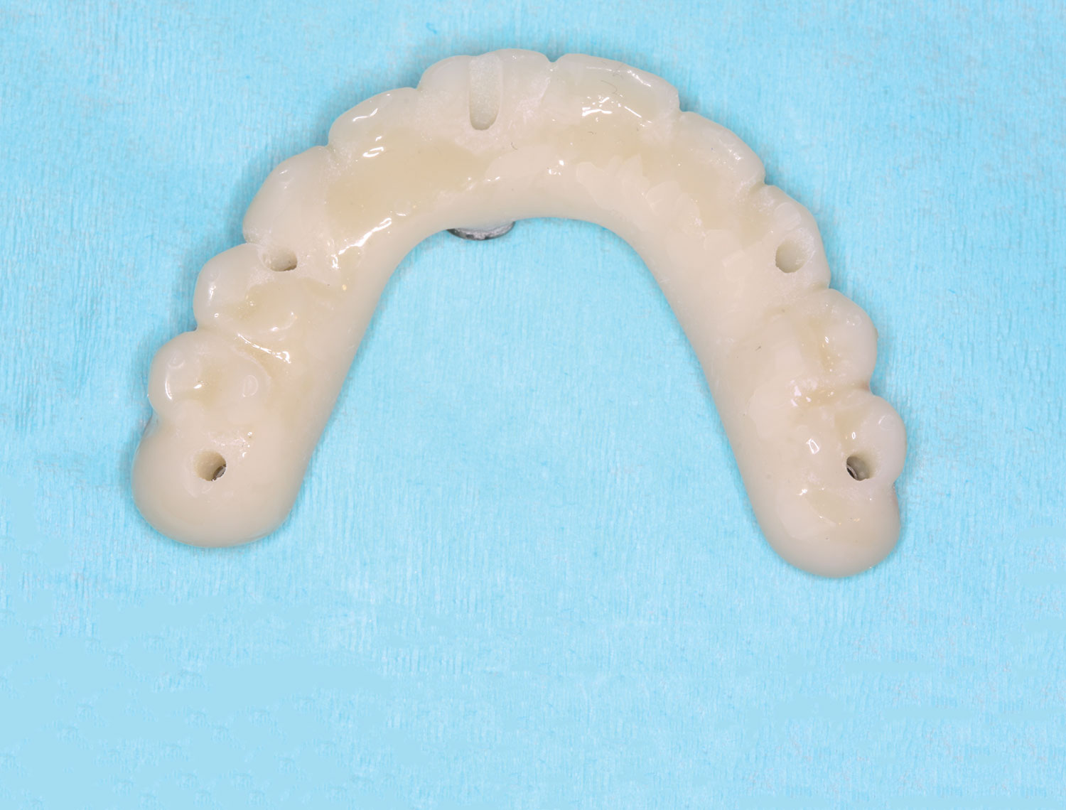 With this protocol, the restorations are seated on multi-unit abutments and are available for most commonly used multi-unit systems. The restoration interface to the multi-unit abutment is through the titanium bar milled directly to the multi-unit abutment interface. No ti-bases are used, so potential errors from cementing a ti-base improperly, or the ti-base becoming uncemented, are eliminated.