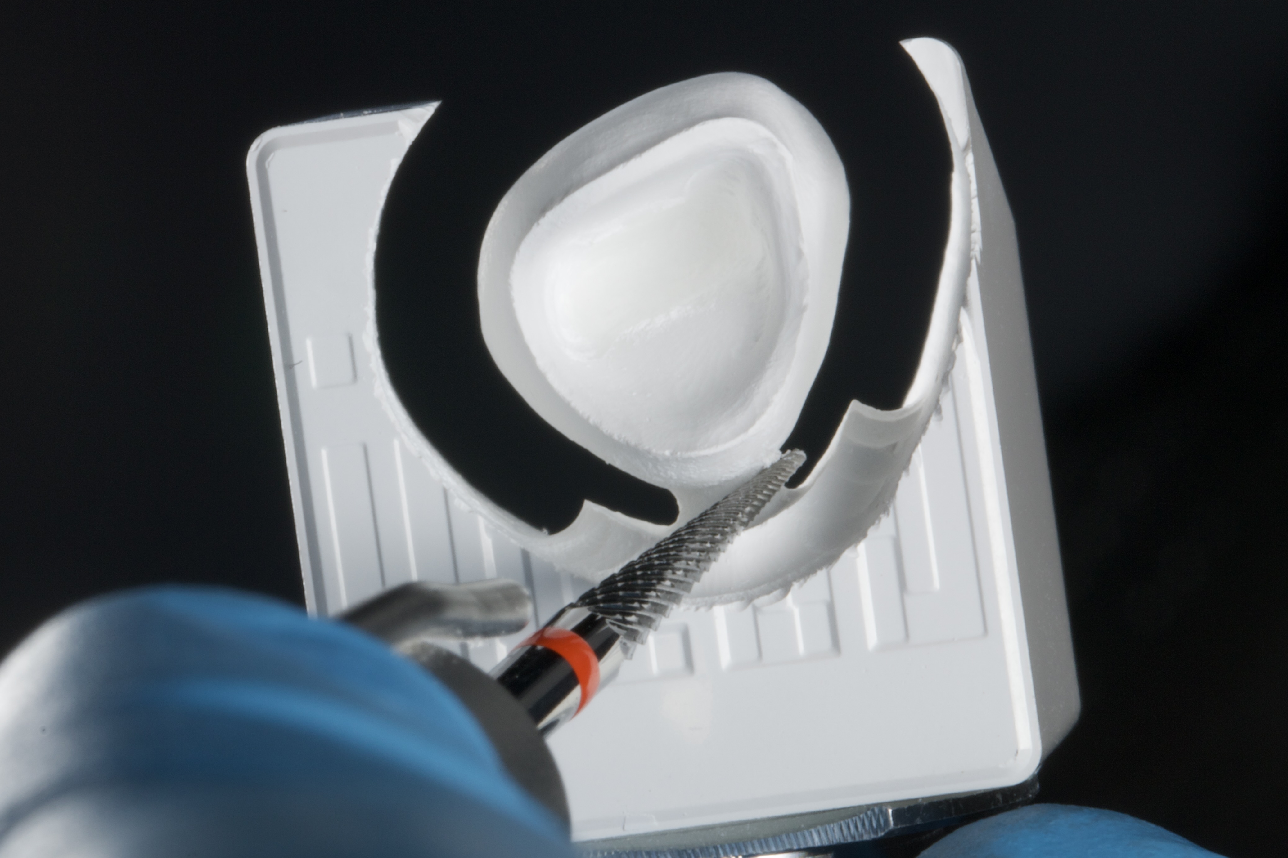High-translucent zirconia blocks for CEREC have recently entered the marketplace. The restorations are milled from pre sintered blocks with slightly enlarged dimensions, compensating for the 20% to 25% material shrinkage that occurs during the final sintering step after milling. This causes less over-milling in the intaglio surface and allows for an exceptional marginal adaptation. With a special chairside furnace and a speed sintering program, the sintering of a single crown can be accomplished within 20 minutes.2