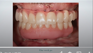The hybrid denture was delivered the next day. After 2 months, the patient was seen again, and the practitioner performed osteo- tomies and placed six maxillary implants. Figure 30 is a retracted view of the patient's dentition 1 week postoperatively. For both the mandible and maxilla together, the mean angular deviation was 2.08 (SD, 0.85), the mean platform deviation was 0.97 mm (SD, 0.43), and the mean apical deviation was 1.25 mm (SD, 0.44), which is within the expected range. With the help of dynamic navigation, the procedure was extremely successful. Figure 31 shows the patient's digitally milled PMMA prosthesis and soft tissue at 1 year postoperatively.