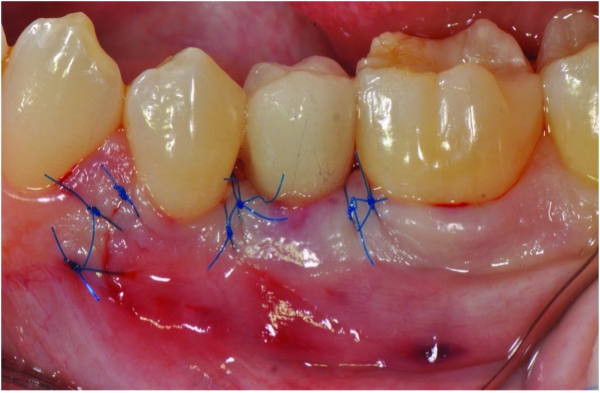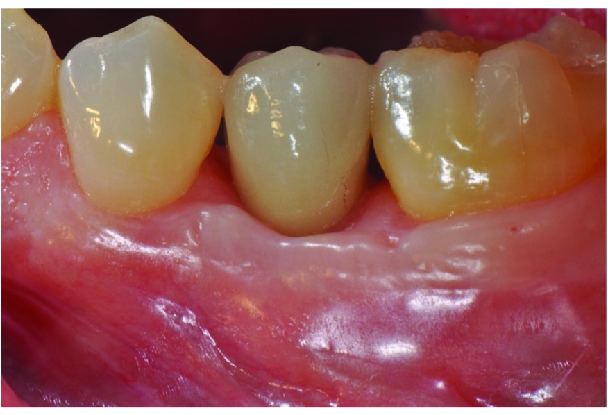 Soft-tissue augmentation using a connective tissue graft may be necessary for cases characterized by a thin periodontal phenotype (less than 2 mm of tissue thickness), an inadequate width of keratinized tissue, or areas of tissue shrinkage, as are commonly seen in the esthetic zone. Free epithelialized gingival grafts or soft-tissue alternatives can be used after at least 4 months post-reconstructive therapy in cases lacking an adequate zone (ie, less than 2 mm width) or thickness of attached keratinized gingiva. Tissue grafts have the added benefit of significantly reducing or eliminating gingival sensitivity that may be experienced during oral hygiene maintenance.