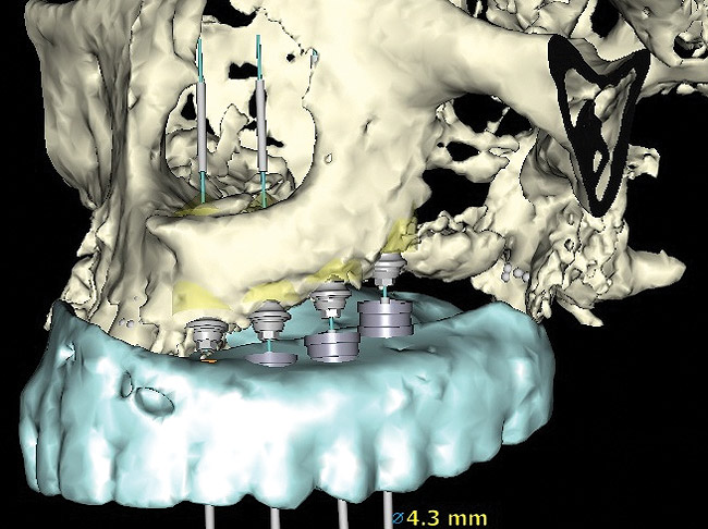 Computer-guided surgery allows for the evaluation and visualization of distorted anatomy. Implants can be planned predictably and placed without making an incision or disrupting the periosteal vascularization of grafted or affected areas.39