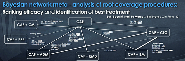 21. Buti J, Baccini M, Nieri M, La Marca M, Pini-Prato GP. Bayesian network meta-analysis of root coverage procedures: ranking efficacy and identification of best treatment. J Clin Periodontol. 2013;40(4):372-386.