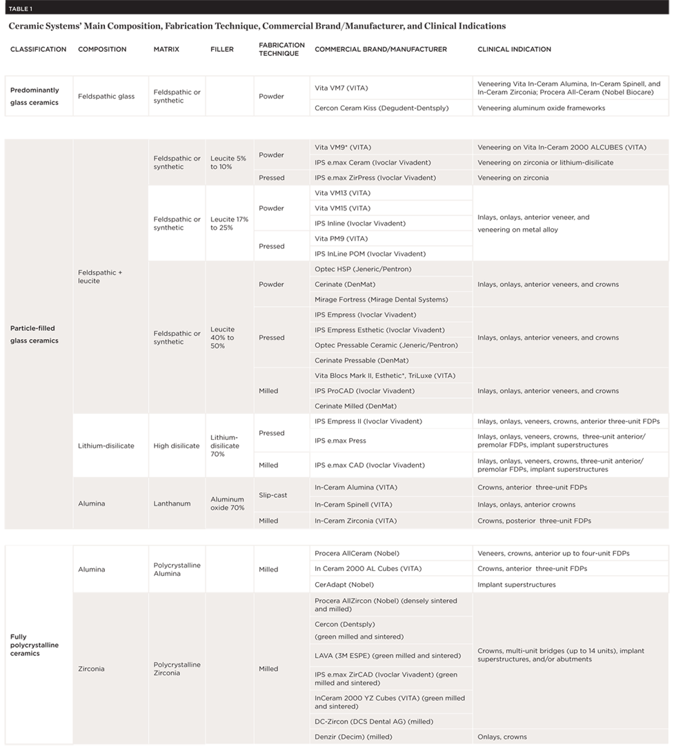 (Note: Information about ceramic systems’ classification, composition, fabrication process, manufacturers, and clinical indication are summarized in Table 1, which can be accessed online at compendiumce.com/go/1502.)