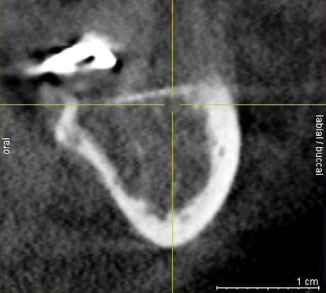 Cadaveric34,35 and CBCT36 assessments of vascular supply to the anterior mandible have found that lingual foramina for insertion of the sublingual artery most commonly occurs in the midline of the mandible. While the location of sublingual artery insertion in the anterior mandible is typically beyond the depth of bone reduction required for most All-on-4–style surgeries, it may be encountered in cases of severely resorbed mandibles. Furthermore, while dental implant placement is typically not required in the mandibular midline for All-on-4–style treatment, it is occasionally necessary to place a dental implant in this location. When faced with this situation, the author has modified the total amount of bone reduction in the anterior mandible to allow for safe placement of a dental implant that avoids vascular impingement while still enabling adequate prosthesis thickness.