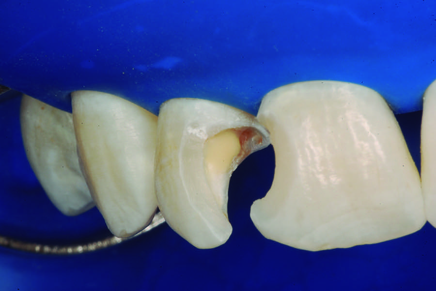 Considering the vast array of therapeutic procedures, professionals face numerous concerns. Thus, this article attempts to present the different treatment sequences for maxillary incisors with extensive carious lesions, with maintenance of the pulp vitality and restoration of teeth anatomy and function. The authors advise against using this procedure in cases in which irreversible pulpitis is diagnosed.