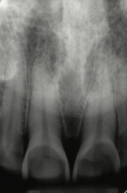 Another intrinsic factor is the patient's gastric acid entering the oral cavity. The source of intrinsic stomach acid may range from rumination or gastroesophageal reflux to chronic alcoholism, pregnancy, or vomiting caused by anorexia nervosa or bulimia nervosa.13 Figure 1 through Figure 3 show the radiographic presentation and clinical examples of dental erosion in advanced stages in the same patient caused by the combination of bulimia nervosa and chronic alcoholism.