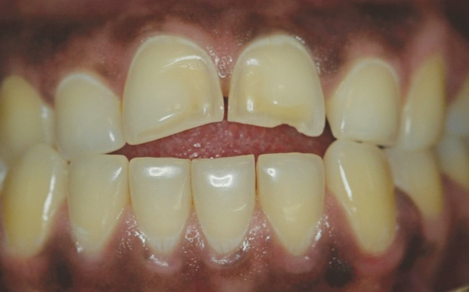 Translucency on the incisal edge of a tooth and intact gingival margin may indicate moderate erosion. In severe cases, the morphology of the tooth becomes significantly altered, which may lead to dentin and/or pulp exposure (Figure 4). The white translucent enamel becomes worn from the surface, leaving yellow dentin and reddish pulp. Worn incisal edges of teeth can be prone to further weakening and fractures. Exposed dentin can cause hypersensitivity to cold, hot, and tactile stimuli.21 If untreated, an exposed pulp may be susceptible to infection and necrosis.