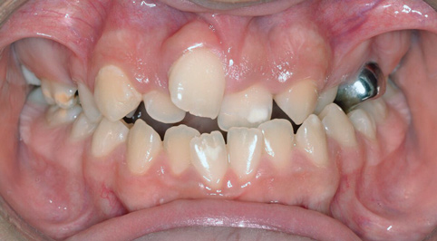 Fig 7. Patient with cleft palate treatment history and underdeveloped craniofacial growth, facial view (Fig 6) and occlusal view (Fig 7).