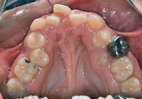 Fig 11. Severely constricted maxilla/high-vaulted palate.