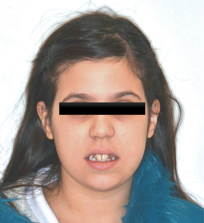 Fig 6. Patient with cleft palate treatment history and underdeveloped craniofacial growth, facial view (Fig 6) and occlusal view (Fig 7).