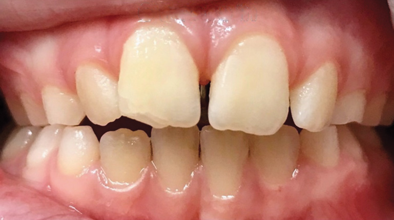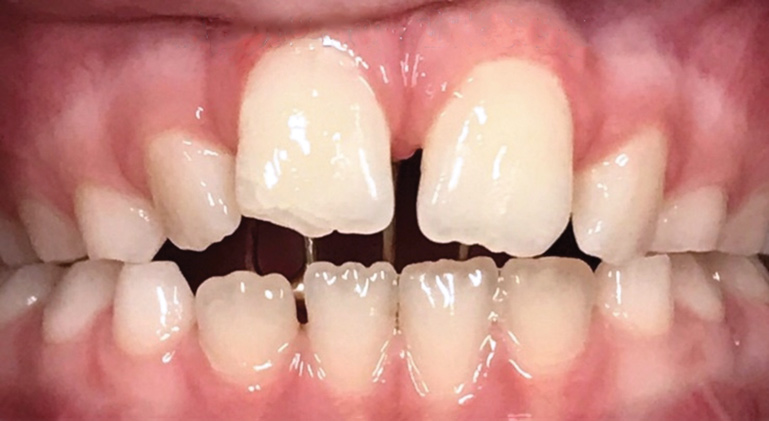 Another common developmental abnormality is the presence of either too few or too many teeth. This could be caused by a dental impaction, the presence of supernumary teeth, or missing teeth. When considering abnormal eruption patterns it is important to count the teeth and look for symmetry. The first sign of abnormalities in eruption may be that adult teeth are not erupting symmetrically within a 6-month span. The primary teeth may not be mobile. When warranted, it may be beneficial to obtain 2- or 3-dimensional radiology to gather more information, as these images may enable etiologies to be diagnosed such as the impaction of a central incisor due to the presence of an odontoma.3,4