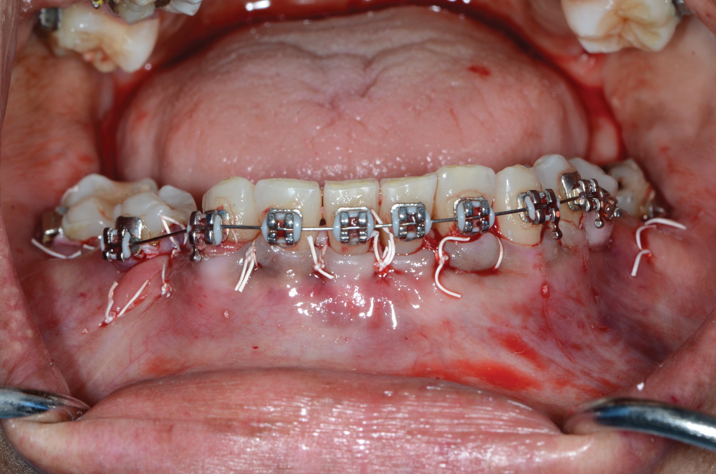 Traditional orthodontic therapy relies on the preexisting alveolar bone volume present, and when the boundaries of the alveolus are exceeded during tooth movement, gingival recession may occur. In fact, the odds ratio for gingival recession in adolescent patients undergoing orthodontic therapy compared with patients that were not treated was 4.48.1 This consequence is a result mainly of a discrepancy involving the tooth and available alveolar bone, where bone volume needed to accommodate these teeth in their final position is limited.2,3 Generally, de-crowding in a deficient jawbone results in teeth being moved into a more labial direction, further compromising the facial bony plate, associated blood supply, and long-term gingival health and integrity.4 Mandibular incisor teeth seem to be the most vulnerable to this occurrence.5 In an attempt to avoid this phenomenon and enable an increased envelope of orthodontic movement, combined surgical-orthodontic therapies have been proposed.