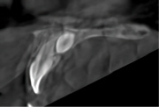 Patient movement is a major concern in CBCT imaging. Movement may present as double contours and/or an overall lack of sharpness of the image. In computer-guided implant surgery, a sharp image is necessary for a successful registration of the surface model scan to the CBCT anatomy. Motion correction hardware and software algorithms have been proposed and commercially applied in some CBCT units and appear to enhance image quality somewhat (Figure 1 through Figure 6).12