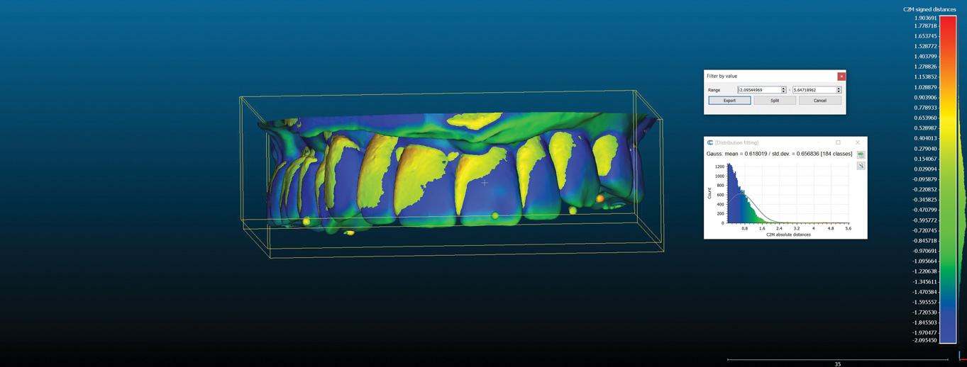 Using the proprietary software, data acquired from the CBCT device are exported in DICOM (digital imaging and communication in medicine) format, while data from intraoral and desktop scanners are exported as stereolithography (STL) files. These data files must be imported to a dedicated implant planning and guide design software. It is this very software that will be used for: the virtual waxing on the surface model of the dentition; the virtual placement of implants, taking into account any surgical and prosthetic considerations; the design of the guide based on the particular implant system each clinic uses; and, finally, export of the designed guide as a printable STL file.