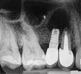 The prevalence of retrograde peri-implantitis is low. Reiser and Nevins found 10 cases in 3,800 implants placed (0.26%).8 In a retrospective study involving 539 implants, Quirynen et al obtained a prevalence of 1.6% in the maxilla and 2.7% in the mandible, with all cases diagnosed before the second-stage surgery.9 Incidence of RPI is reported to increase to 7.8% when teeth adjacent to the implant site have a previous history of root canal therapy.10