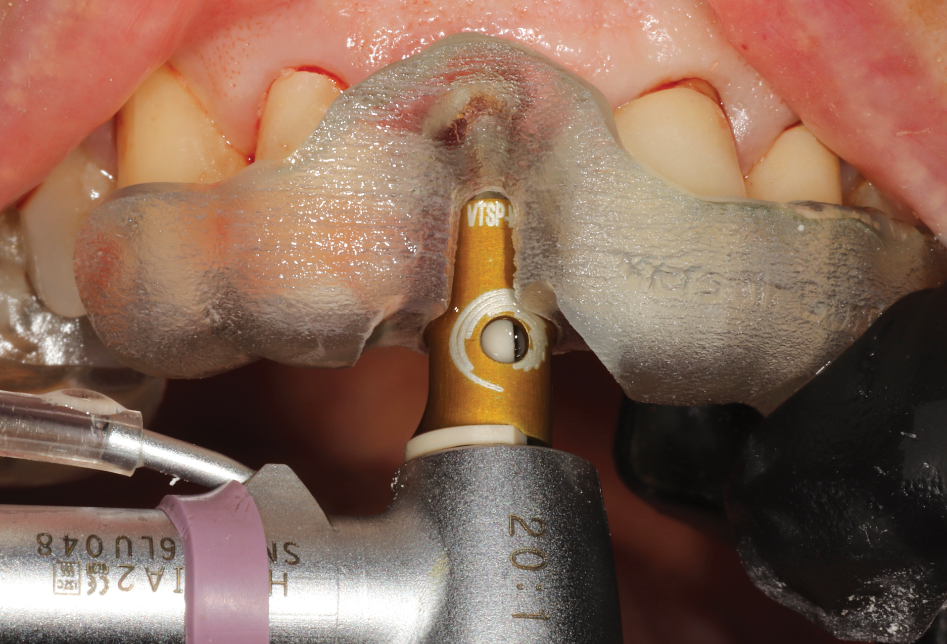 After planning has been completed, a traditional 3D-printed static osteotomy guide may be fabricated (Figure 1).4 Static surgical guides can be tooth-borne, mucosal-borne, or bone-borne. The use of these technologies can help reduce common human errors, eliminating potential harm to the recipient,5 and, in conjunction with diagnostics such as implant stability meters, allow for same-day delivery of prefabricated provisional teeth.