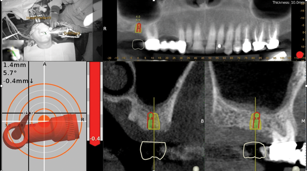 Once these steps have been accomplished, the clinician can begin the operation while viewing the computer monitor for directional improvements. At this point, the procedure is similar to using a global positioning service (GPS) in a car or on a mobile device. In short, dynamic navigation could be considered "Google Maps" for implants.